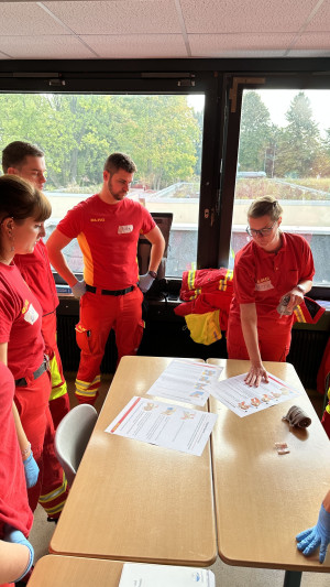 Auf dem Programm standen unter anderem das cABCDE-Schema, die Herz-Lungen-Wiederbelebung nach Einhelfer- und Zweihelfermethode, der Umgang mit medizinischem Sauerstoff, die Versorgung kritischer Blutungen, das Anlegen von Verbänden sowie die korrekte Dokumentation von Maßnahmen.